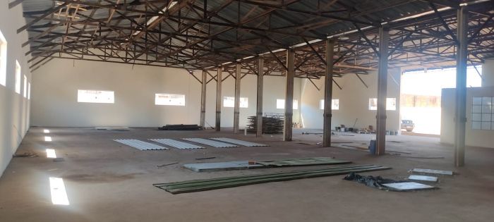 Barracão com mais ou menos 2.000 m², 800 m² de área construída, 5 m² de pé direito, com escritório, 4 banheiros, entrada para caminhões.