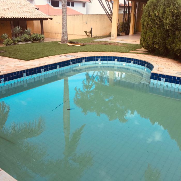 Casa com 4 dormitórios, sendo 02 suítes, sala com jardim de inverno, sala de jantar, cozinha planejada, completa de armários, churrasqueira, piscina e quadra esportiva.